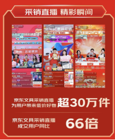 以“低价高质”为特色的京东采销直播间已经成为消费者618购物的新去处。京东618全周期,京东文具采销直播为用户带来低价好物超30万件;京东文具采销直播成交用户数同比增长66倍,越来越多的消费者通过直播的方式采买文具。