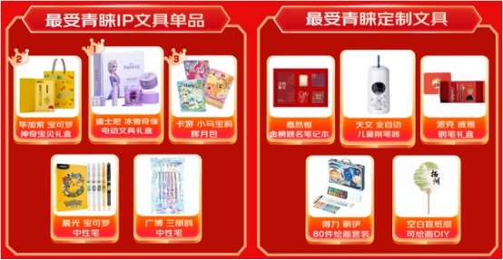 文具不仅有实用功能,更能提供情绪价值,IP文具、定制文具受到当下消费者的热烈追捧。京东618全周期,迪士尼冰雪奇缘电动文具礼盒、毕加索的宝可梦神奇宝贝礼盒、卡游小马宝莉辉月包、晨光宝可梦中性笔、广博三丽鸥中性笔成为消费者最受青睐的IP文具单品。嘉然恒金榜题名笔记本、天文全自动儿童削笔器、派克威雅钢笔礼盒、得力萌伊80件绘画套装等定制文具也受到消费者的高度关注。