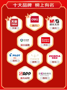 对于消费者而言,选择品牌文具,无论是产品品质还是售后服务都更有保障。京东618全周期,得力、天章、晨光、齐心、亚太森博、百乐、派克、斑马、金光APP、西玛成为最受欢迎的十大品牌。