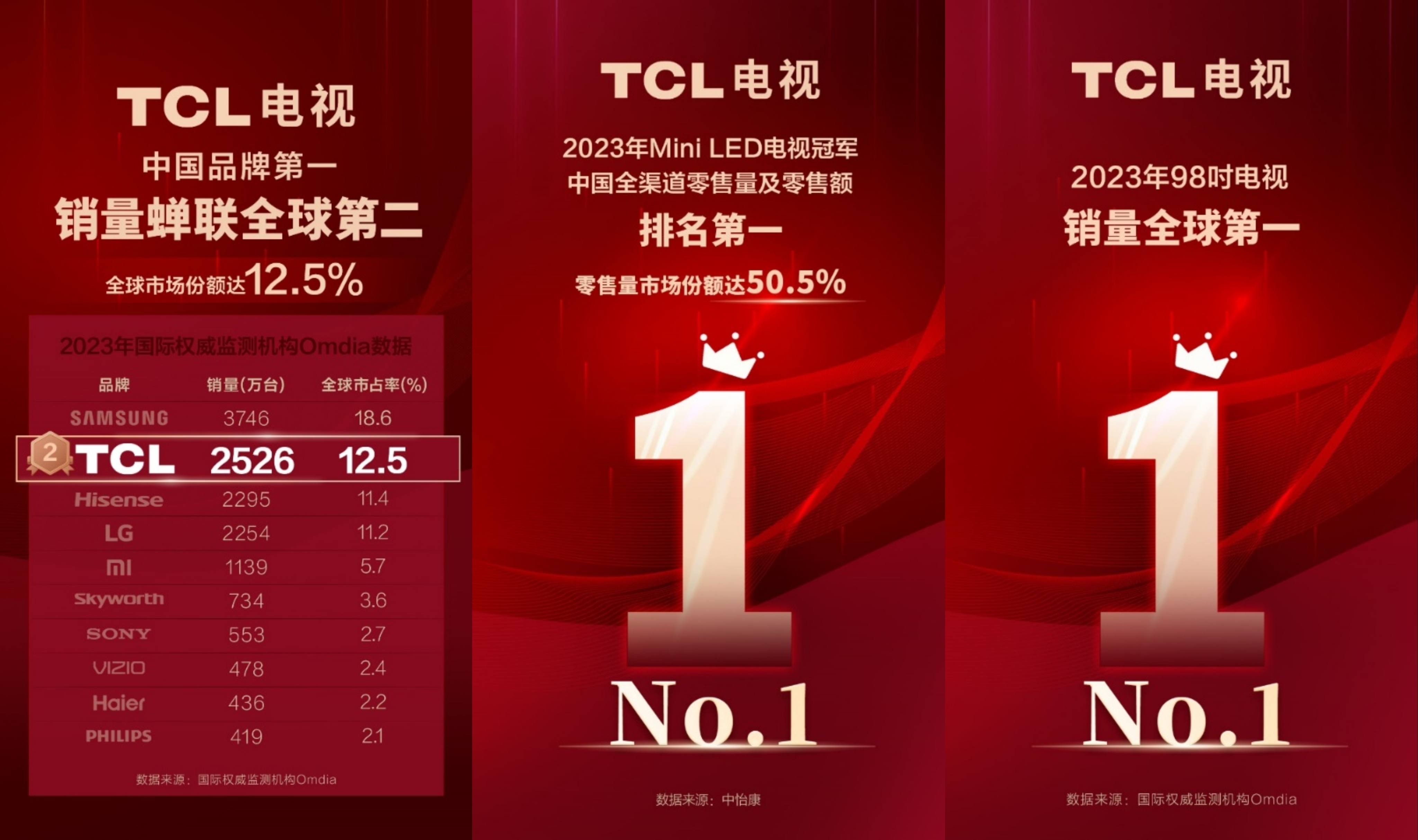 这些成绩的取得,不仅彰显了TCL在全球市场的强大竞争力,也体现了消费者对TCL电视品牌的认可和喜爱,是对TCL过去一年努力的最好回馈。