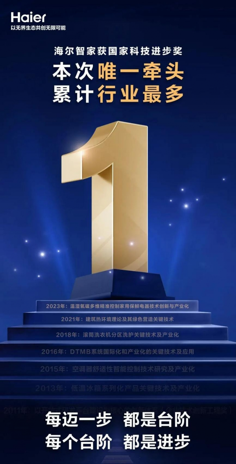 首先就是字面意思,即海尔智家是靠脚踏实地的创新和长期积淀,造就了如今的行业引领地位。6月24日,2023年度国家科学技术奖正式揭晓。海尔智家“温湿氧磁多维精准控制家用保鲜电器技术创新与产业化”项目荣获国家科学技术进步奖,成为家电行业唯一牵头获奖企业。至此,海尔智家已累计获得17项国家科技进步奖,稳居行业第一。