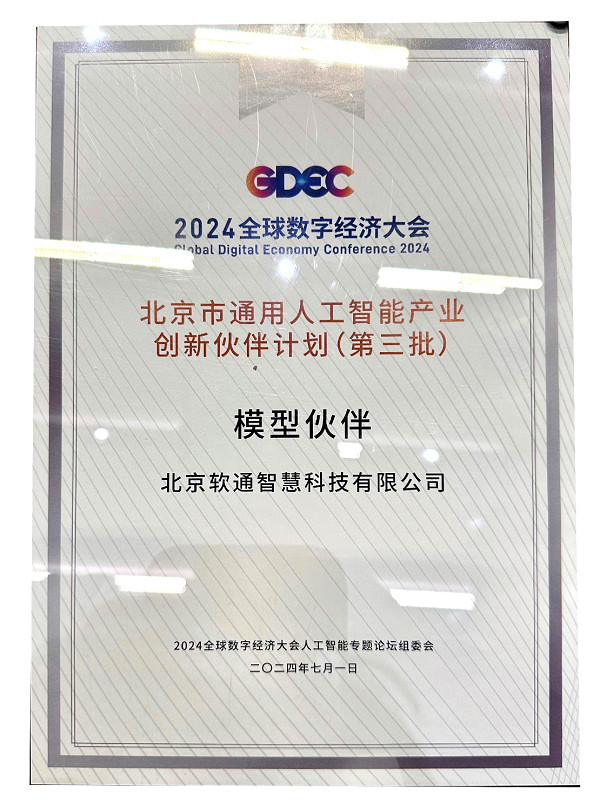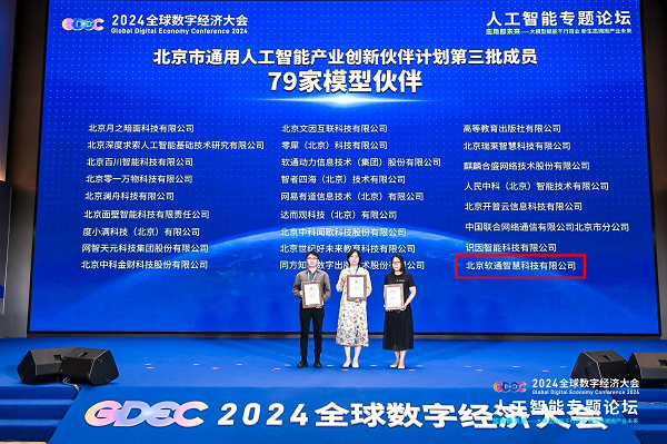 7月1日,2024全球数字经济大会人工智能专题论坛在京举办。论坛发布了北京市通用人工智能产业创新伙伴计划第三批名单,软通智慧凭借提供从孔明多模态大模型到AI+行业创新应用的全链路服务体系能力,顺利成为伙伴计划第三批“模型伙伴”。