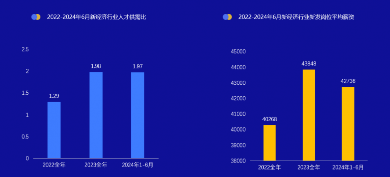 7月19日,脉脉高聘主办的“职场人的大脑训练法”Mclub分享会在上海举行。脉脉商业运营总监杨滢、卓胥脑空间创始人翁卓谞出席并发表主题演讲。杨滢透露,2023年,新经济行业人才供需比从1.29上升到1.98,即2个人争夺1个岗位。2024年1-6月,人才供需比略微下降至1.97,但求职压力依旧很大。与此同时,新经济行业的新发岗位平均月薪也有所下降,从2023年的43848元下降至2024年1-6月的42736元。