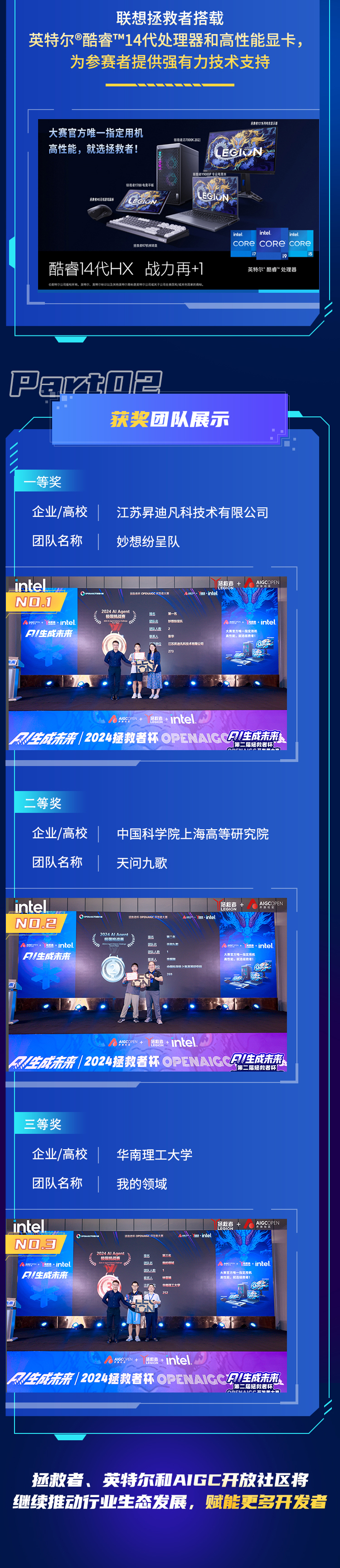 “2024拯救者杯OPENAIGC开发者大赛”不仅是一次技术展示,更是AI领域思想碰撞和潜力探索的盛会。未来,我们期待继续推动这一领域的创新和交流,引领更多科技应用的落地,以AI技术为动力,赋能更多开发者!