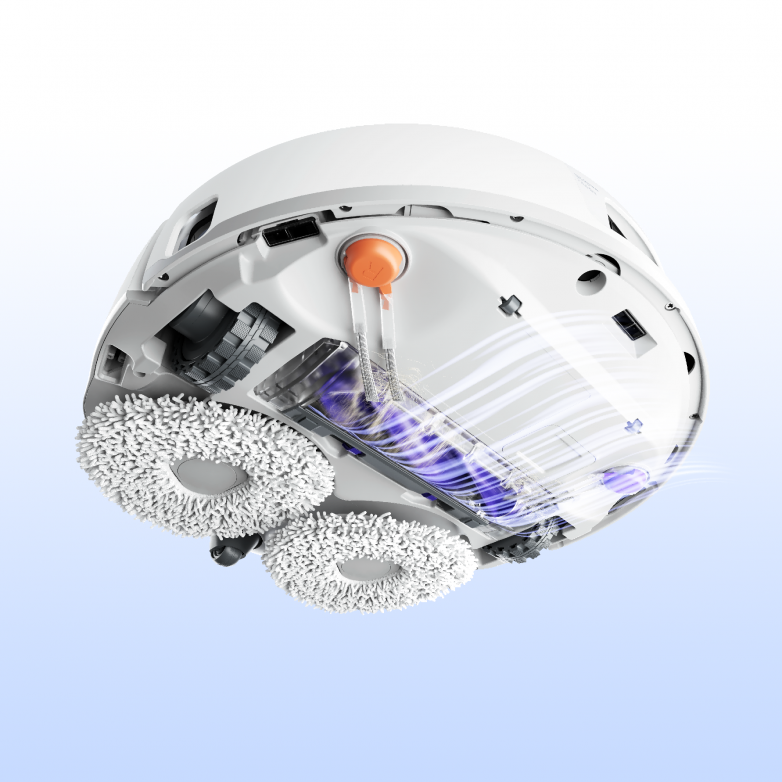 云鲸J5在保留前代产品核心拖地优势的基础上,创新开发了仿生人手擦地系统,有效解决边角清洁问题。不同于市面上其他厂商的机械臂外扩方案,云鲸自研的仿生人手擦地系统,保留了清洁覆盖更优的勒洛三角形拖布结构,在外扩的同时可保持8N恒压拖地压力,对于边角脏污清洁效果更佳;同时坚持双向旋转拖布的设计,拖布清洁能力更强,整体清洁效果更佳。此外,云鲸J5新增了动态贴边清洁功能,仿生人手擦地功能协同Smart-Swing智能贴边,边扭边伸,可灵活处理家庭环境中不同形状障碍物的延边清洁。