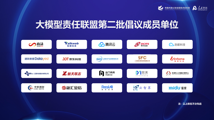 大模型责任联盟由传播内容认知全国重点实验室科技伦理委员会指导、人民网科技公司与大模型企业联合发起,致力于在确保安全的前提下合规发展,在发展过程中不断完善安全机制,推动大模型良性发展与安全合规并重。