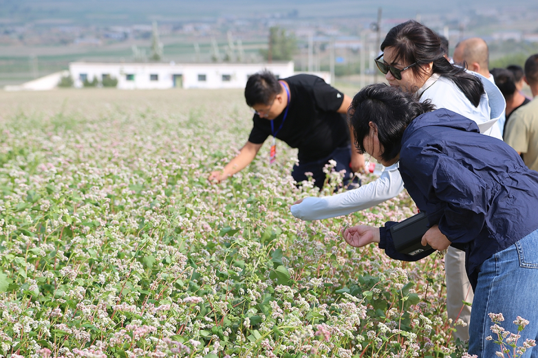 与会人员参观定边县荞麦种植田