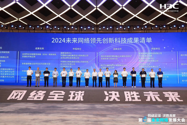 近日,未来网络创新科技成果发布仪式在第八届未来网络大会上同期举行。紫光股份旗下新华三集团算力集群核心交换机H3C S12500 AI凭借创新的DDC架构、极致的转发性能与网卡解耦能力,斩获“创新科技成果奖”殊荣,中国工程院院士刘韵洁为获奖单位颁奖。