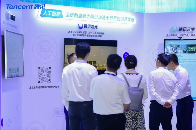 腾讯混元大模型是此次参展的核心展品之一。作为腾讯全链路自研的大语言模型,腾讯混元具备强大的中文创作能力、复杂语境下的逻辑推理能力、以及可靠的任务执行能力。