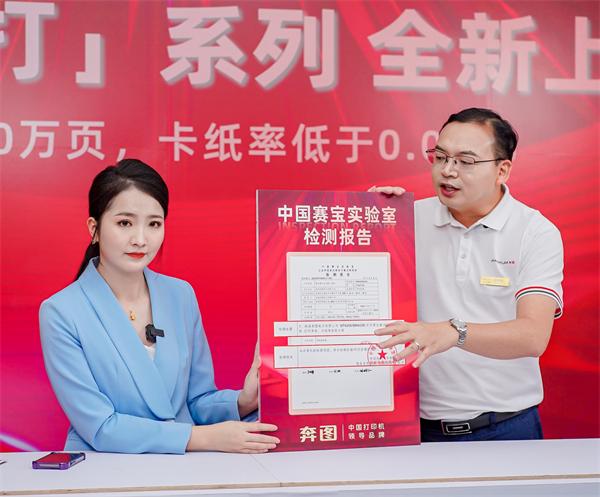 受限于直播时间,扛打系列的性能未能悉数展示。实际上,奔图扛打系列的持久性能远远超过一小时。在中国赛宝实验室(工业和信息化部电子第五研究所)的测试中,奔图扛打产品连续打印了20多天,打印张数超20万页,且卡纸率低于 0.02‰,再次证明了国货在高端打印市场的强大实力。