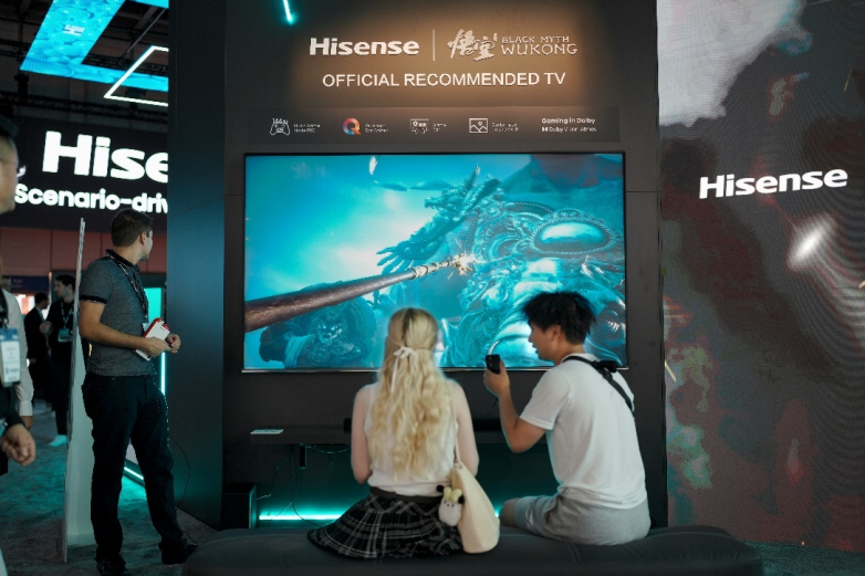 在家居场景,海信为大屏电视游戏和影音娱乐爱好者量身定制的《黑神话:悟空》联名款电视,吸引众多海外玩家闯关体验。为了精准呈现这部3A游戏大作的电影级画质,海信和黑神话美术团队联合定制了专属游戏模式,通过XDR高动态调优、精准色彩调校和暗部细节增强,完美还原各种细节,将游戏体验提升到极致。
