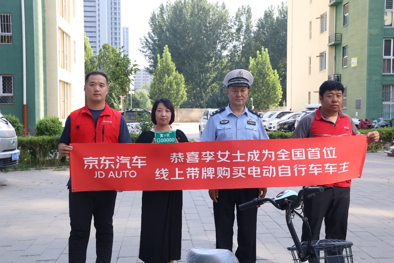 9月19日下午,全国首个线上带牌购买电动自行车的用户在河北廊坊固安县诞生,京东快递小哥现场为购车用户进行车辆使用讲解、车辆调试和上牌登记,廊坊市固安县交警大队相关负责人和京东汽车采销共同为用户挂牌。至此,随着京东汽车在全国首个推出电动自行车带牌销售,用户不需要多跑一趟去车管所上牌,在家就能够收到允许车辆上路的合规牌照。