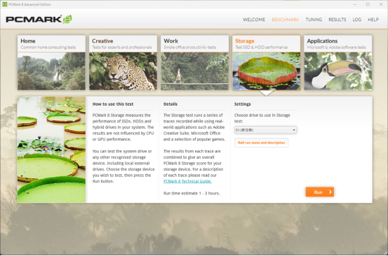 PCMark 8测试比较贴近现实应用,测试项目也比较全面。