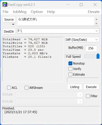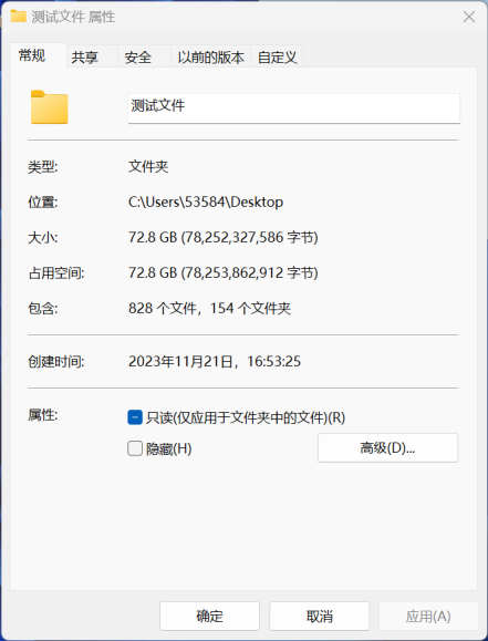 测试文件大小为72.8GB,总计828个文件。