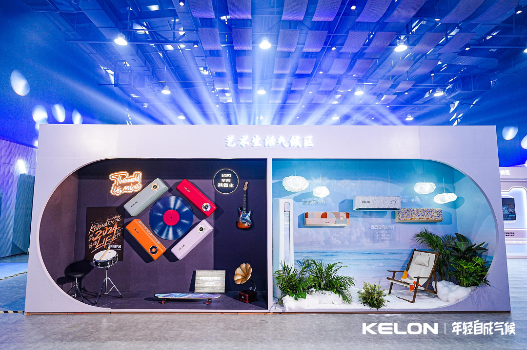 为了营造艺术感氛围,个性化定制方式,来满足年轻用户对于个性差异化的需求。本次发布会,科龙空调联合工业设计中心CMF设计研究所共同打造了“艺术生活气候”展区。该展示区通过了“胶囊”的创意形式,展示了两个科龙空调创新设计系列。右侧的“我的气候我做主”展区,以“holiday”为主题,将西方建筑元素大胆且热烈地表达在家电之上,让异域风情跃然眼前,表达了年轻人崇尚诗与远方、追寻自由的时代精神。左侧“我的空间我做主”展区,展出了Sweet home系列,以小耳朵系列的温显表盘为灵感,复刻黑胶唱片造型,搭配了不同风格多彩底图,风格呈现出多变、多彩、复古,而又张扬的青春质感。