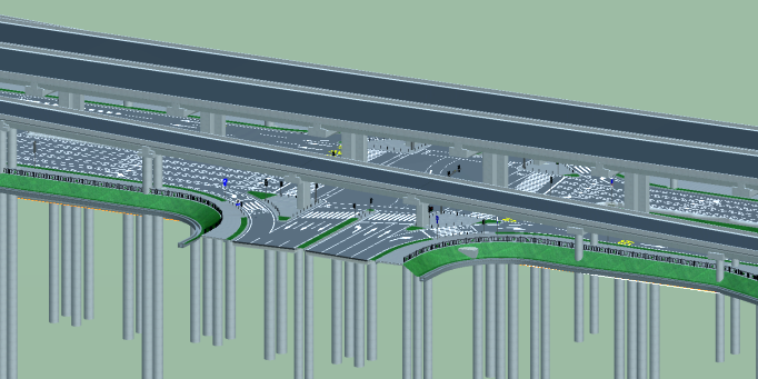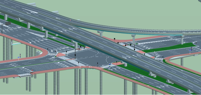 叠加各专业设计模型,进行交叉口的综合分析,包括视距分析、净空净距分析和交通仿真分析等。