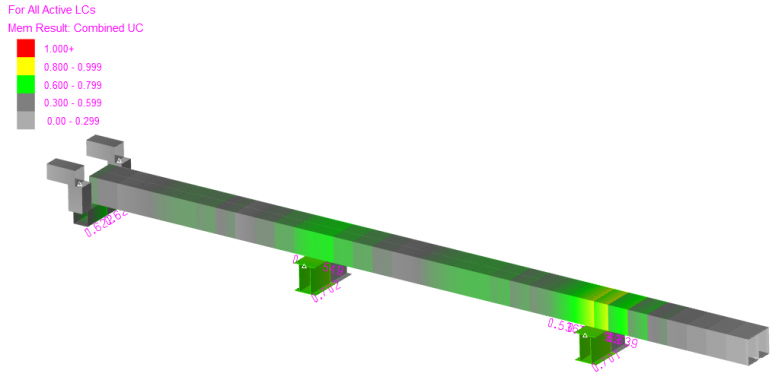 图12 滚装过程轨道梁及两端支撑结构强度SACS计算结果