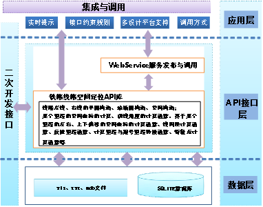 (1)铁路线路空间位置计算API库:基于线路专业数据文件,构建API库,实现线路通用计算功能,实现不同的集成调用方式,包括二次开发程序的集成、服务器端程序的集成。满足MicroStation、OpenRail等平台上的二次开发系统中调用接口要求。