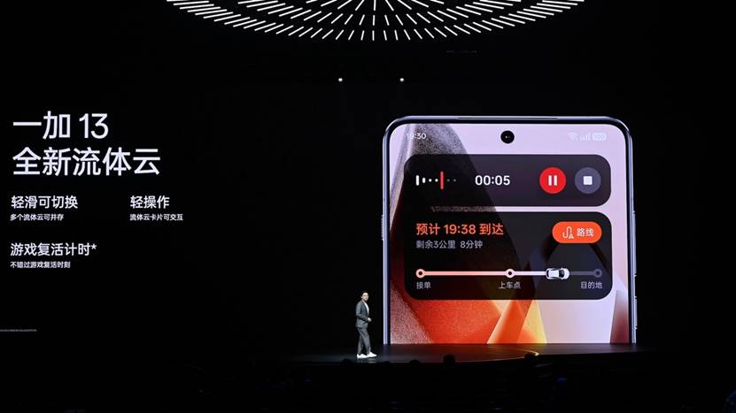 同时基于出厂搭载的全新 ColorOS 15操作系统,一加 13带来全新流体云设计,手指轻松一划就能看到想要的信息,游戏用户甚至可以通过流体云看到复活倒计时。同时一加 13 也支持双应用自由分屏,两个分屏都是大屏,一边玩游戏一边还能查攻略,再也不用手忙脚乱来回切换。还有全新灵感主题以及车机互联,带来更个性、更自在的系统操作体验。