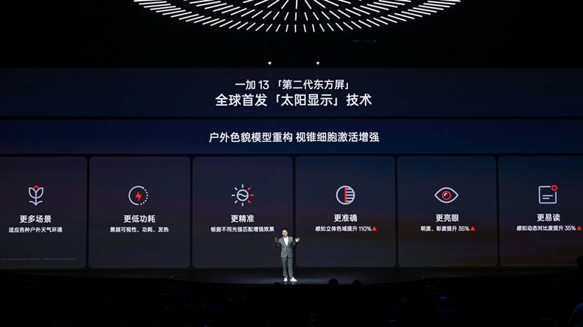 针对手机屏幕户外强光场景看不清等问题,一加 13 第二代东方屏全球首发「太阳显示」技术,可以根据不同的环境光强度来智能匹配显示效果,并根据环境色温精准还原色彩表现,有效提高户外场景下高亮度内容的可视性和可读性,强光照射屏幕内容也依旧清晰可见,一加 13 也获得了行业首个「德国莱茵 TüV 智能护眼高可见性认证」。
