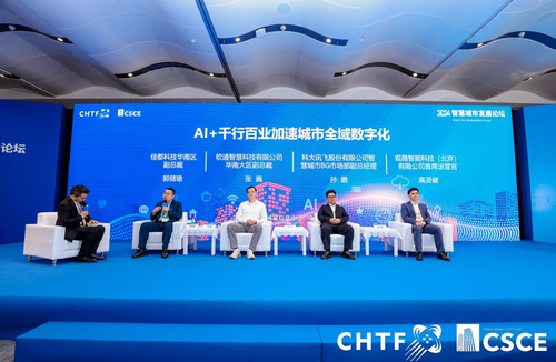 在以“AI+千行百业 加速城市全域数字化”为主题的高峰对话环节,佳都科技华南区副总裁郭储瑜、软通智慧科技有限公司华南大区副总裁张巍、科大讯飞股份有限公司智慧城市BG市场部副总经理孙鹏、观薇智能首席运营官高灵健作为对话嘉宾,重点谈论了在交通领域对待人工智能的开放与谨慎态度,AI模型、孪生模型和大数据模型在智慧空间打造层面的应用,智能语音在不同行业领域的应用价值,以及智能化解决方案如何赋能大健康产业发展。