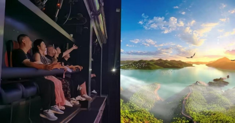 这一名为“飞越河北”的5D球幕影院通过震撼的视觉效果、7.2声道的震撼环绕音效、六轴机械同步的运动座舱,以及风、雾等感官特效元素,将观众完全带入一场翱翔于河北宏伟景观之上的非凡旅程。这场融合多种感官体验的大冒险为游客带来了一次难忘的高空之旅,它展示了河北省内11座城市的20处著名景点,让游客充分领略河北深厚的历史遗产与自然美景。