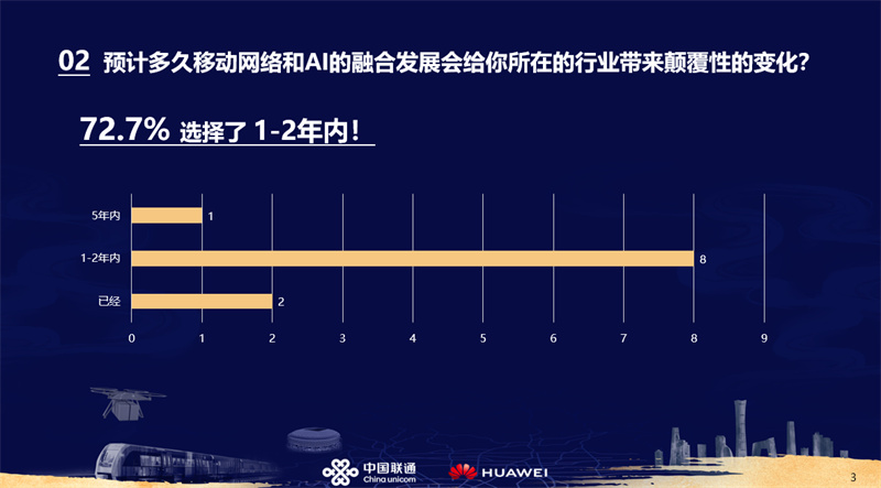 2024年,5G-A商用和AI入端踏上了全新征程。两者相互赋能、共赢发展,正为各行业注入新的发展活力。在本次围炉谈活动中的现场调查显示,90%的嘉宾认为5G-A和AI的融合发展已经或将在1-2年内为其所在的行业带来颠覆性的变化。
