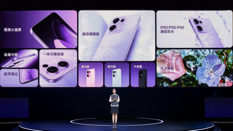 OPPO 产品经理携Reno13 系列「蝶蝶紫」配色亮相