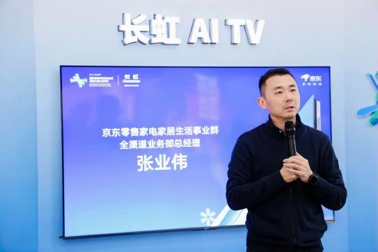 同时,京东渠道新品JD1000H也正式亮相。作为万元内唯一天空音壁画电视,它同样具备贴墙、美观、智能、易用的特点,将为用户带来更加极致的试听享受。京东零售家电家居生活事业群黑电业务部总经理张京表示,将进一步加强与长虹的合作,共同推动长虹AI TV的市场销售;同时京东零售家电家居生活事业群全渠道业务部总经理张业伟也表示进一步联合长虹开拓智慧家居业务。