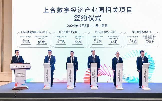 在签约环节,于冬泉代表胶州市政府与华为云算力中心、浪潮云算力中心、上合大华数智赋能中心、华正信息等上合数字经济产业园有关项目签约。
