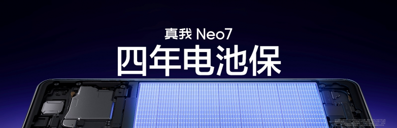 为让用户用得放心,真我Neo7为首销用户提供四年电池保服务。如果4年内电池容量小于80%,就可免费换新电池。