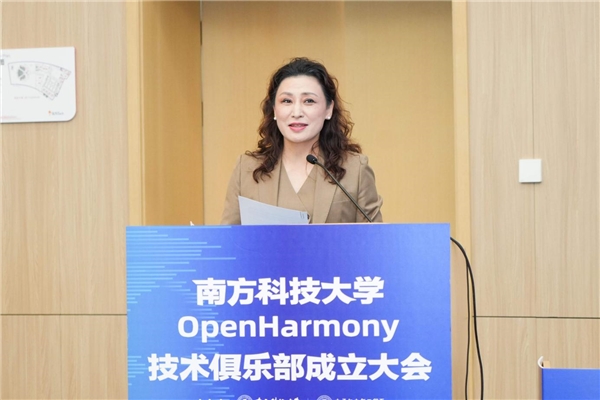 南方科技大学党委书记姜虹出席大会并发表致辞。她表示,南方科技大学肩负着服务国家战略的重任,积极推动教育、人才、产业与创新链的深度整合。我校电子与电气工程系成功构建了APP开发实践体系,学生团队在开源鸿蒙领域取得了显著成就。回顾2021年,南方科技大学率先成立了中国首个高校开源俱乐部,携手华为、腾讯、Linux基金会亚太区等企业和开源组织共同打造了一个促进学生知识共享和交流成长的开源高校联盟。在全球科技日新月异的背景下,南方科技大学OpenHarmony技术俱乐部的成立为师生开辟了新的交流平台,具有深远意义。同时,她也期望俱乐部能够成为南方科技大学师生展示才华的舞台,加强团队合作,发挥创新精神,为学术研究与产学研协同注入新的活力。