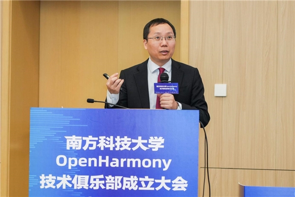 OpenHarmony项目群技术指导委员会主席、华为Fellow陈海波在大会上致辞。他表示,南方科技大学作为高等教育改革领域的先锋,在新兴学科领域内取得了显著突破,展现出成为新技术发源地的巨大潜力。陈海波强调,智能操作系统作为信息技术的基石,对用户体验和系统安全具有深远影响,已广泛应用于各行各业,成为支撑数字化、智能化转型的重要力量。OpenHarmony秉持自主创新、开源开放的理念,致力于打破智能终端操作系统的垄断局面,对数字经济的可持续发展具有关键作用。操作系统既对下游产业链具有牵引作用,又直接服务于上游的用户与开发者,是提升设备性能、构建生态系统的核心要素。自2020年开源以来,OpenHarmony发展迅速,吸引了众多企业与共建者的积极参与,代码量不断增长,多款软件已成功通过兼容性测评。最后,陈海波希望南方科技大学成立OpenHarmony技术俱乐部后,鼓励创新实践,构筑产学研用协同发展的平台,共同推动OpenHarmony技术的持续发展与社区繁荣。