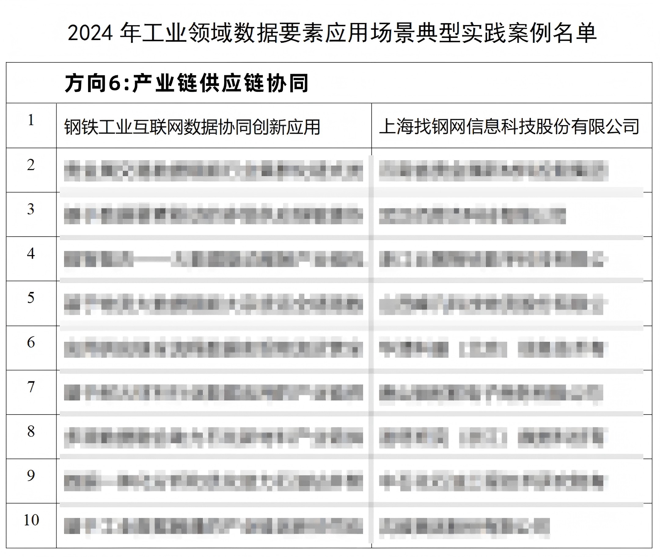 近日,工业和信息化部发布了2024年工业领域数据要素应用场景典型实践案例名单,找钢网申报的“钢铁工业互联网数据协同创新应用”成功入选。