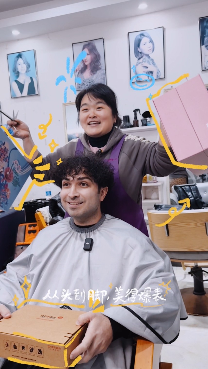 新年要有好事业、好前程,也要有新面貌、新形象。因为手艺过硬、“听得懂话”而走红的发型师晓华,这一次爆改外国小哥,让他以“漂亮好头”在2025年开个好头。两人沟通时,“你这剪头发how much呢”、“吐刀乐+吐刀乐”等中英文混搭配上魔性语调,为新年增添了更多欢乐。同时,晓华还带来了京东超市洗护小美盒2025头彩组合,让网友们都能“从头到脚,美得爆表”。