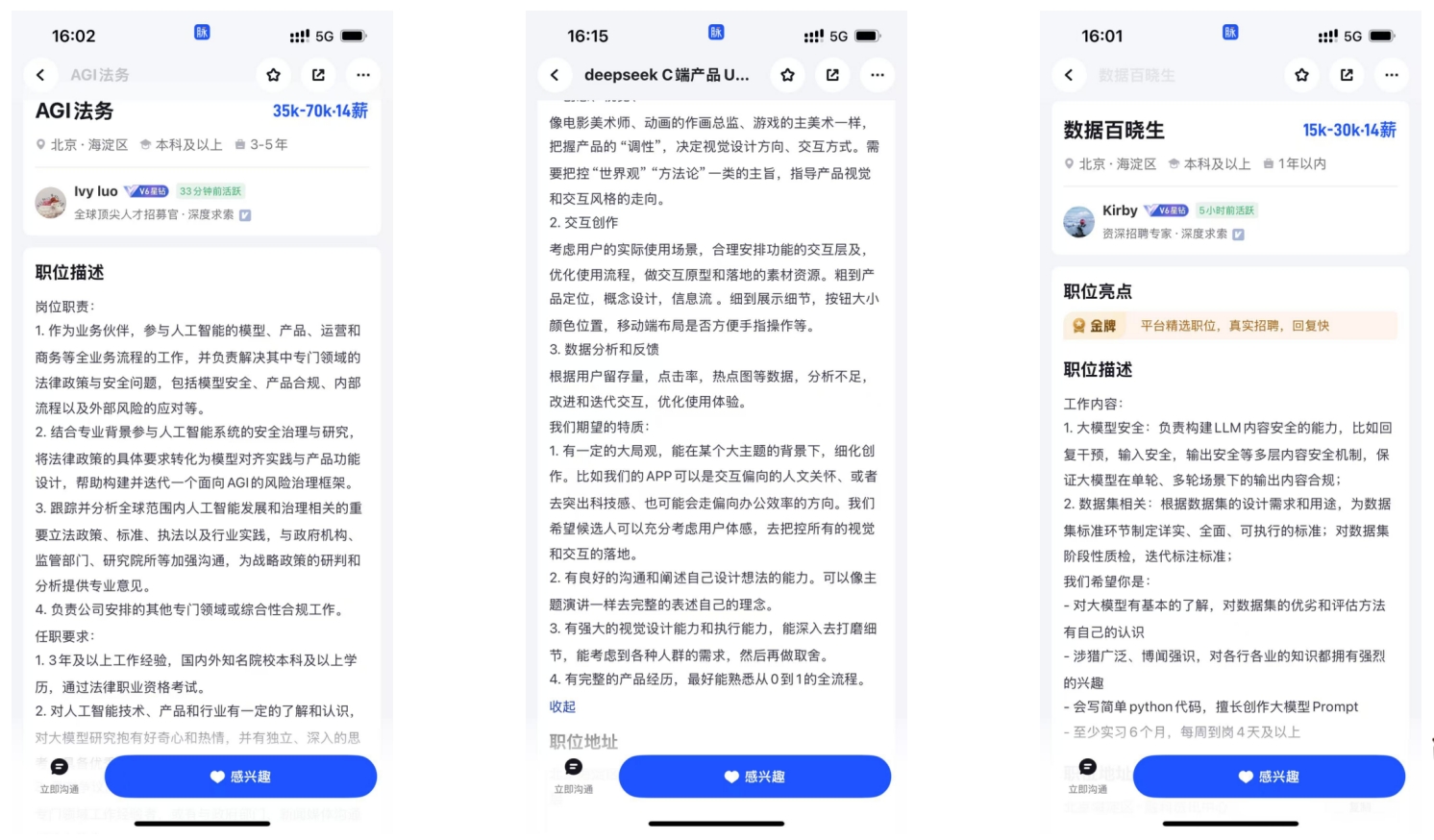 值得关注的是,即使是非技术类岗位,DeepSeek也在职位描述中明确表示需要对人工智能技术、产品和行业有一定的了解。同时,DeepSeek也更加关注AI产品的大局观和人文关怀,“技术人文主义”理念融入人才招聘标准。比如在“UI/UX设计师”等岗位的职责中,表示希望应聘者可以“有一定的大局观,能在某个大主题的背景下,细化创作。比如我们的APP可以是交互偏向的人文关怀”。不同于行业常见的大模型安全工程师和数据治理专家,DeepSeek的 “数据百晓生”岗位则要求应聘者同时具备安全机制设计与数据治理能力,可见其对人才的要求高于行业平均水平。