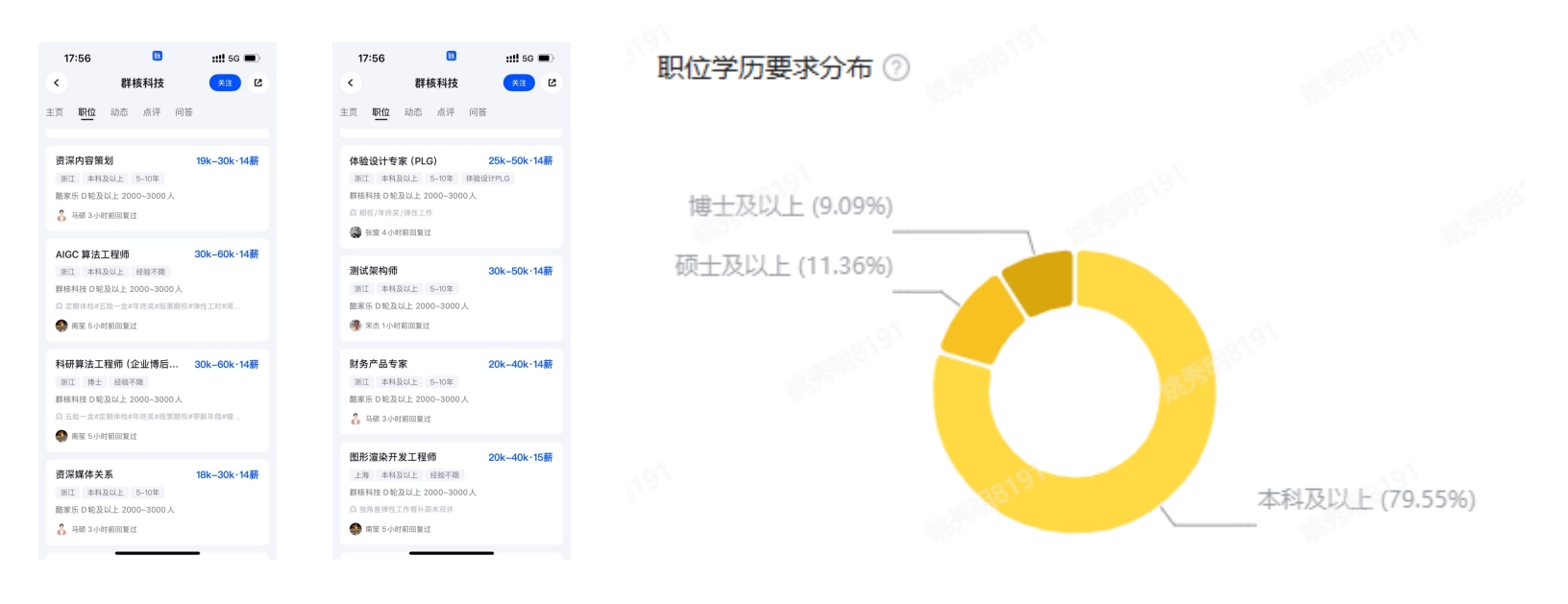 云设计软件平台和SaaS服务提供商群核科技目前在脉脉高聘发布了上百个岗位,包括AIGC算法工程师、科研算法工程师等大模型岗位,以及测试、媒体关系、财务等多个工种。值得关注的是,群核科技在招岗位的学历要求中,明确要求在硕博学历的岗位超过20%。
