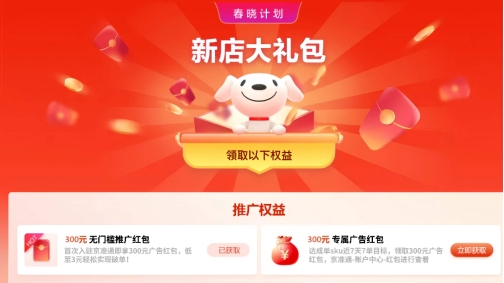 第二步:拿补贴投广告,快速破单。京东宣布将在今年为品牌和商家投入至少10亿广告金补贴,上不封顶,用来支持品牌和商家通过广告投放实现精准营销,快速提升商品曝光度和销售额。具体来说,新商家入驻京东后,可以在京麦领取“新店大礼包”,其中包含300元无门槛广告红包、免费的经营工具等价值近万元的新商权益,商家通过广告红包可以一键开启全站营销,快速提升店铺曝光,助力快速破单。