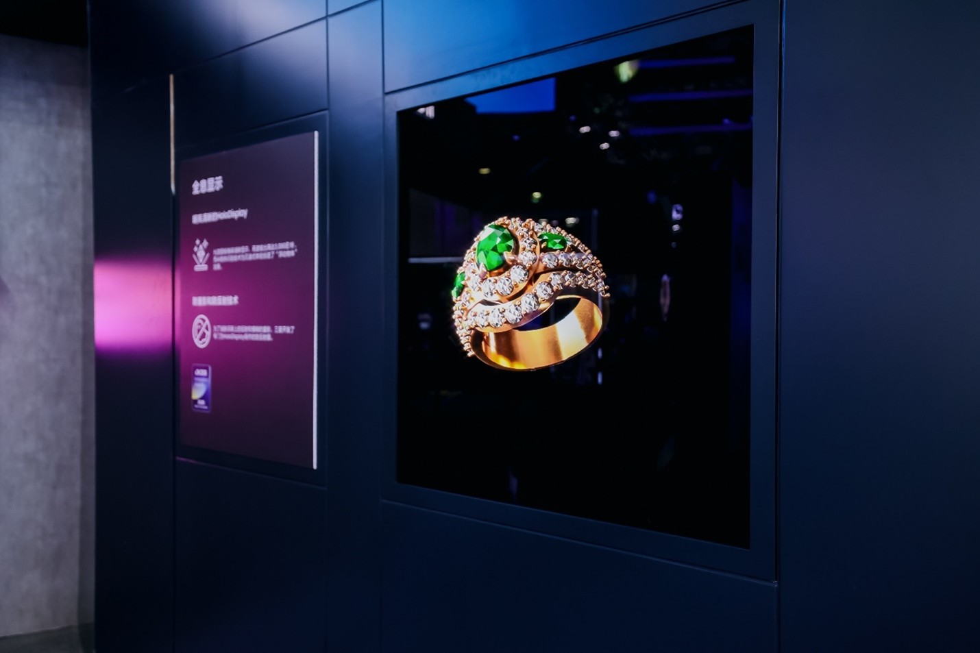 作为显示技术领域的佼佼者,三星始终以创新为驱动,不断突破技术边界,助力行业发展。 被誉为未来显示技术的 MICRO LED ,如今触手可及。在三星展台,看似是展示花瓶的“玻璃橱窗”出现了悬浮的文字。这幕由三星全球首款透明MICRO LED以透明立方体造型演绎的“消失的屏幕”,引得众多观众纷纷驻足。该产品采用透明面板与纤薄边框设计,近乎玻璃般透明的视觉效果可和谐融入各种环境。其独特的模块化显示设计支持灵活拼接,可定制不同尺寸与分辨率的显示效果。三星HoloDisplay浮动式屏幕同样吸睛。它凭借3D技术让悬浮影像栩栩如生,仿佛珠宝就在眼前,尽显显示技术的创新魅力。此外,三星114英寸和140英寸MICRO LED再度参展,共同打造沉浸感十足的视觉盛宴。
