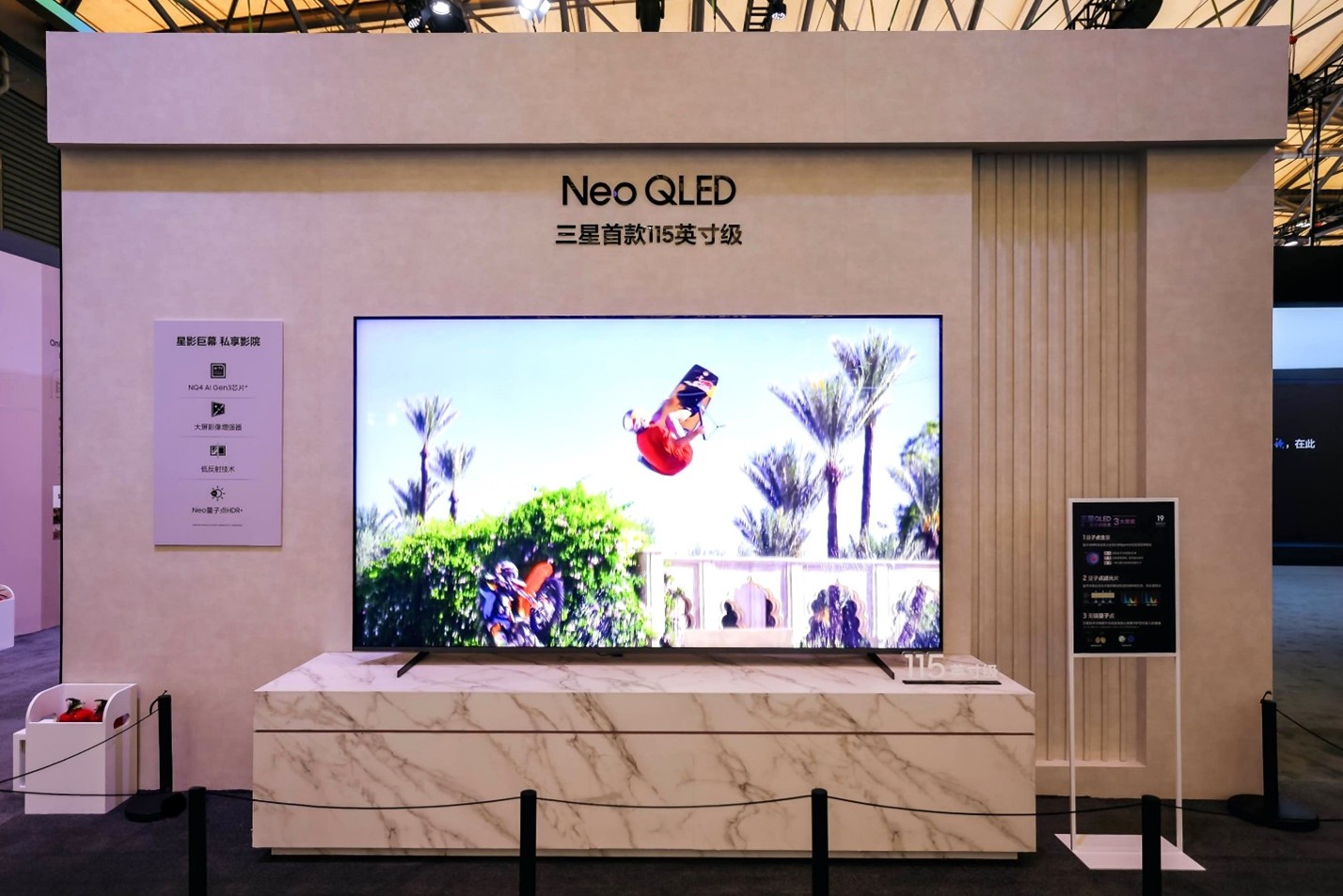 步入三星Vision AI体验区,由2025旗舰新品Neo QLED 8K QN950F领衔的智能化视听之旅随即展开。该电视搭载了全新升级的NQ8 AI Gen3芯片,其神经元网络数量提升至768个,实现了AI影像增强Pro、自动HDR重构Pro、色彩增强器Pro的全面升级,无论是回味经典老电影,还是紧追体育赛事直播,它都可以自动优化调整画质设置,呈现出清晰流畅、鲜艳逼真的视觉效果。QN950F具备的自适应音效Pro、智能控声AVA Pro和自适应音量,可随场景和音源自动优化音效,带来精准细腻、沉浸的听觉盛宴。随着消费者对沉浸式观影追求的不断升级,大尺寸屏幕的需求日益增长。三星Neo QLED新推出的115英寸级Neo QLED 4K QN90F可让用户尽享大屏视觉盛宴。