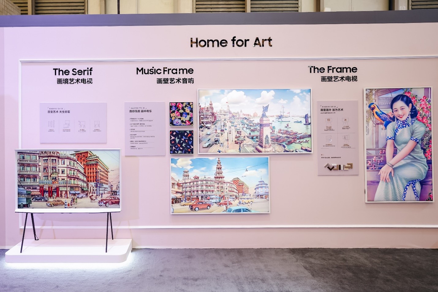展区中, 101英寸级MICRO LED、2025新品Neo QLED 8K QN900F呈现的老上海建筑场景,将艺术升级为真实。新品QN900F采用全新画壁艺术电视外观和倒切角设计,机身更纤薄精致,更好地融入家居场景。三星Neo QLED 4K电视凭借Mini LED技术,以卓越的色彩还原能力,呈现出逼真细腻的画质。此外,2025三星The Frame画壁艺术电视的背光技术升级为量子点Mini LED,刷新率提升至144Hz,让画面细节更丰富,光影变化更清晰。而The Serif画境艺术电视则以其独特的可移动设计,将艺术带到每个角落。以老上海旗袍纹样为封面的Music Frame画壁艺术音响,凭借其杜比全景声技术和空间自适应音效Pro,演绎音画交融的艺术盛宴。这些创新产品突破科技界限,融入优雅艺术,尽显三星对理想家居的追求。