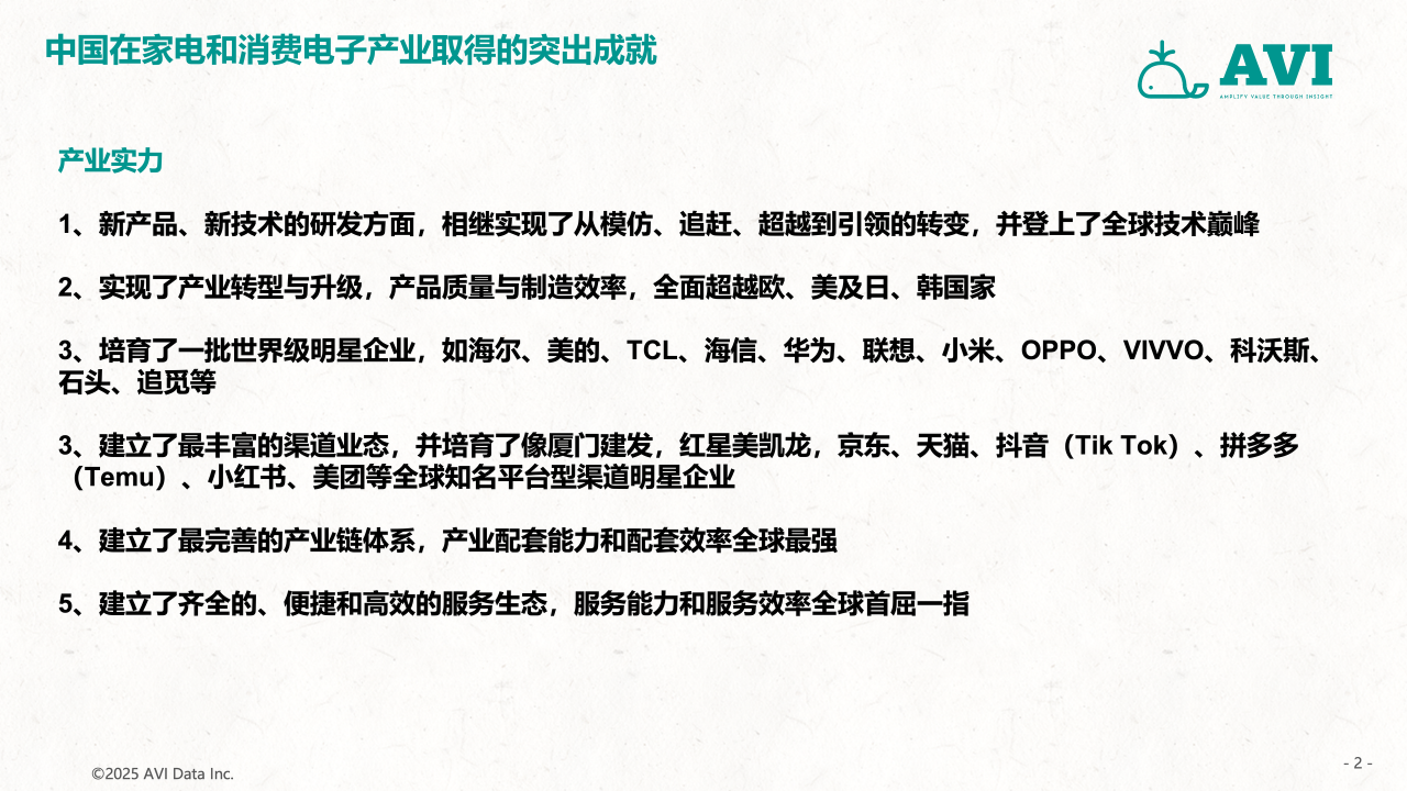 未来,随着“一带一路”倡议的深入推进和全球经济一体化进程的加快,中国家电和消费电子企业将迎来更多全球化机遇。东南亚市场不仅是规模庞大且增长迅速的重要区域,更是技术创新和品牌建设的关键战场。面对激烈的市场竞争和差异等挑战,中国企业需积极拥抱变化,加强技术研发,提升品牌影响力,并借助像AVI这样的专业数据服务机构的支持,实现更加稳健和可持续的发展。