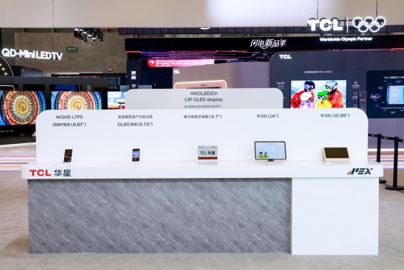 TCL华星则重点展出印刷OLED显示器、量产印刷OLED专业显示屏、OLED手机屏、OLED笔电屏、HVA电视屏等产品,涵盖从5.5吋到150吋等大中小全尺寸。其中27吋4K 120Hz印刷OLED显示器、21.6吋TCL华星首款量产印刷OLED 4K专业显示屏、6.73吋全球首款量产分区分频OLED屏、14吋全球首款屏下摄像OLED笔电屏、149吋MLCD星际皓影屏、98吋HVA Pro高画质电视屏均一一亮相。