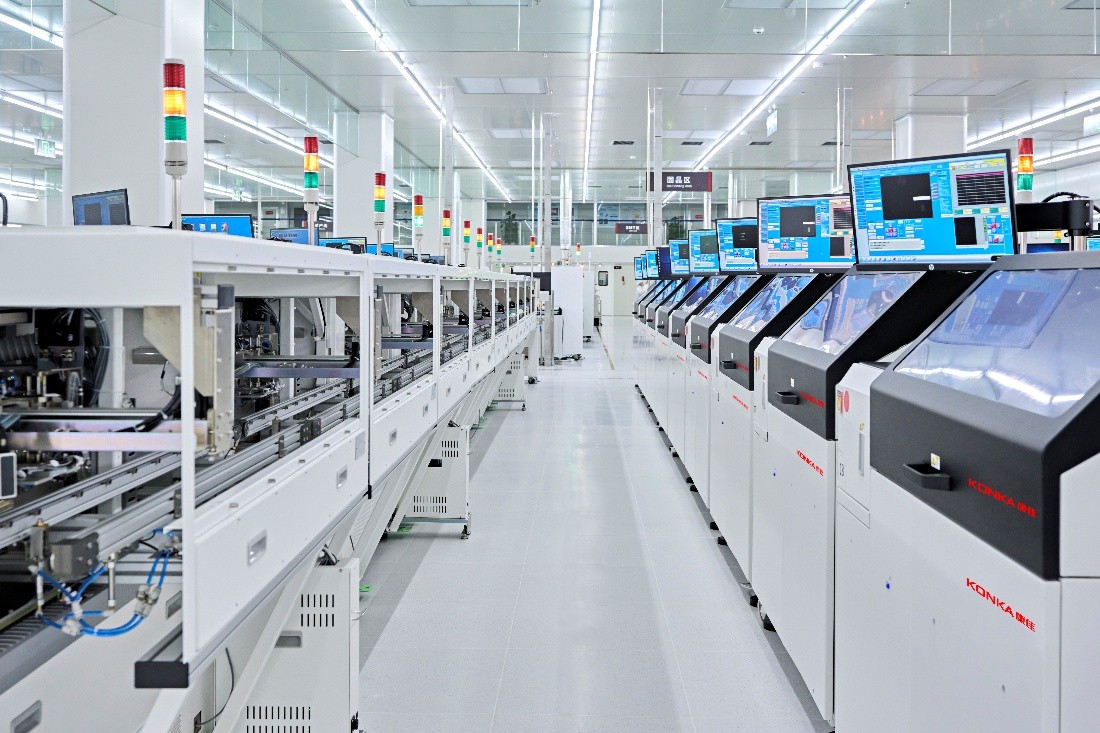 一是从全产业链技术布局来看,康佳在MiniLED领域实现了全产业链布局,从MLED外延芯片到巨量转移再到封装,掌握了核心技术自主知识产权,具备MiniLED背光电视量产实力。2022年9月重庆康佳光电正式投产,已建成Mini/Micro LED芯片量产线、Mini/Micro LED直显量产线、国内第一条全制程的巨转中试线和MLED检测中心,全面进入MLED产业化阶段。重庆康佳光电正致力于提高芯片利用率、提高巨量转移效率速度以及突破关键修补技术,以期在未来几年内降低制程成本,增加市场接受度。
