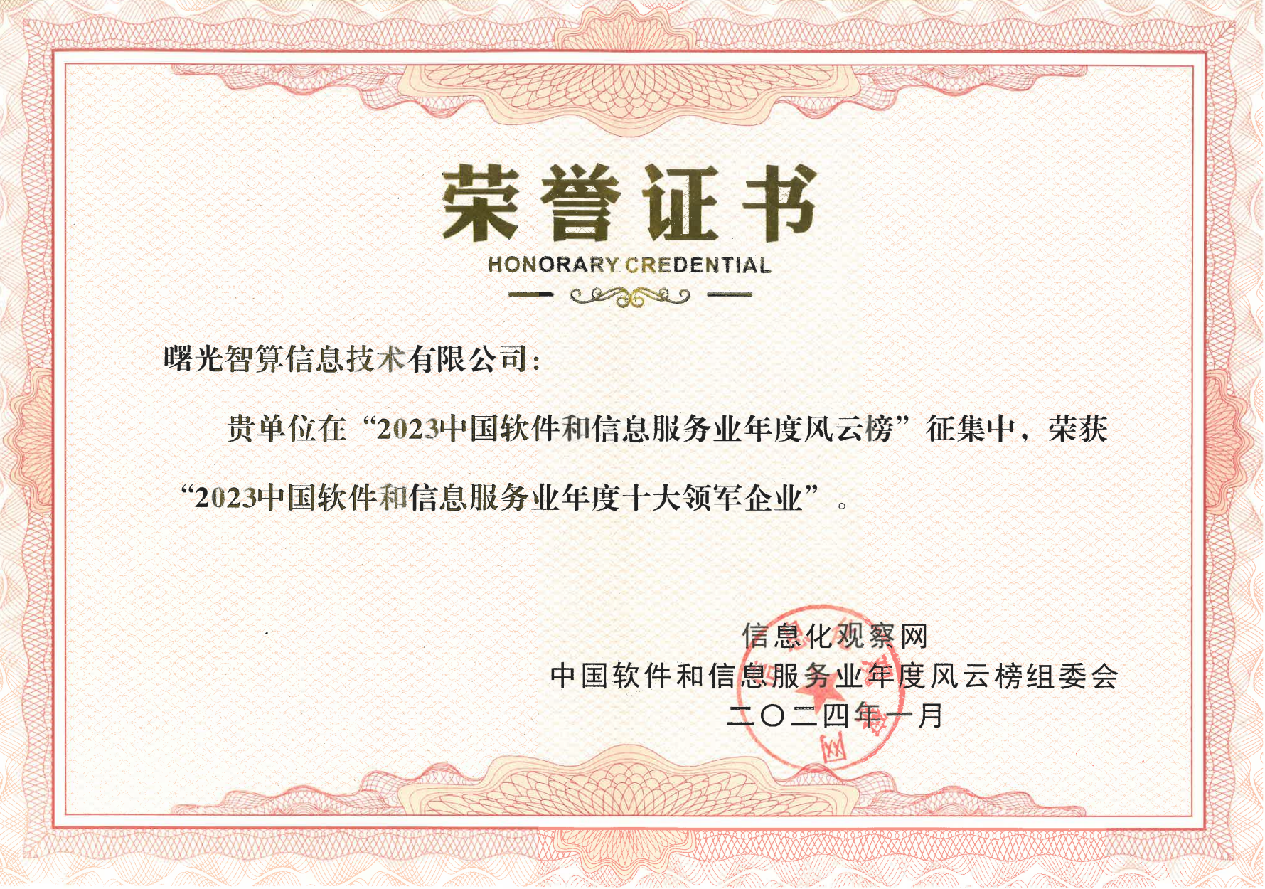 近日,由信息化观察网、中国软件和信息服务业年度风云榜组委会等单位发起的“2023(第七届)中国软件和信息服务业年度风云榜”重磅揭晓。曙光智算凭借其卓越实力和创新成果,荣获“十大领军企业”奖。同时,“曙光智算加速构建全面算力网络生态”案例也顺利入选《2023中国数字化转型优秀方案集》。