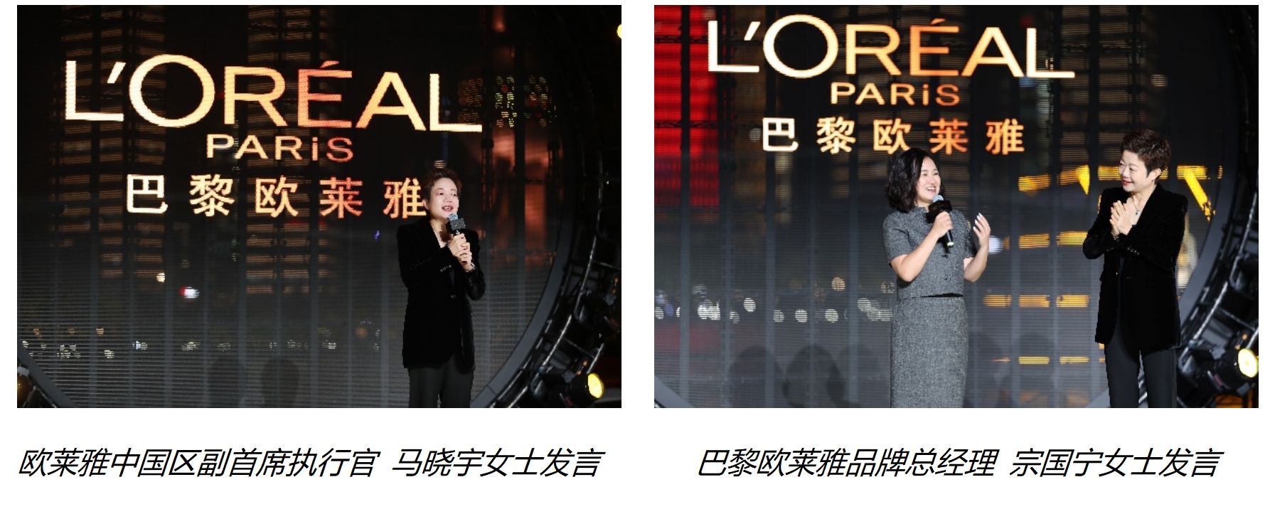 欧莱雅中国区副首席执行官马晓宇女士和巴黎欧莱雅品牌总经理宗国宁女士,在活动当晚分享了自身与“我值得拥有”的背后故事,对于马晓宇女士来说这句广告语承载着整个欧莱雅集团进入中国的使命,而她在欧莱雅这27年当中有太多的时刻觉得值得去挑战一下;同样迈入在欧莱雅集团的第20年的宗国宁女士认为无论在多难的时候,“我值得拥有”都是她心中的那团火、那股热情。一句宣言陪伴至今,巴黎欧莱雅一直坚定地与女性站在一起,去创造值得拥有的美!