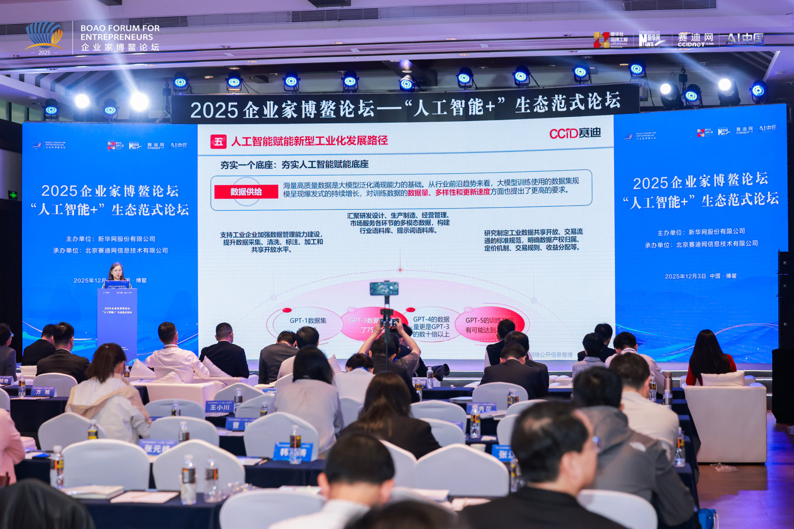 12月3日消息,2025企业家博鳌论坛重要组成部分——“人工智能+”生态范式论坛在海南博鳌成功举办。本次论坛由新华网主办,赛迪网承办,聚焦“人工智能+”新范式,汇聚政产学研各界精英,深入探讨人工智能与实体经济深度融合的创新实践,发布多项标杆性应用成果,为构建开放协同的“人工智能+”产业生态凝聚共识。