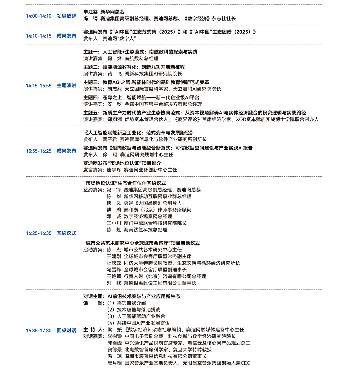 论坛上,赛迪网数字人“小迪”发布了《“AI中国”生态范式集(2025)》和《“AI中国”生态图谱(2025)》两项重要成果。同时,赛迪网还发布了《迈向数据与智能融合新范式:可信数据空间建设与产业实践》报告,推介了“市场地位认证”项目,举办了“市场地位认证”生态合作伙伴签约仪式....查看详情>>