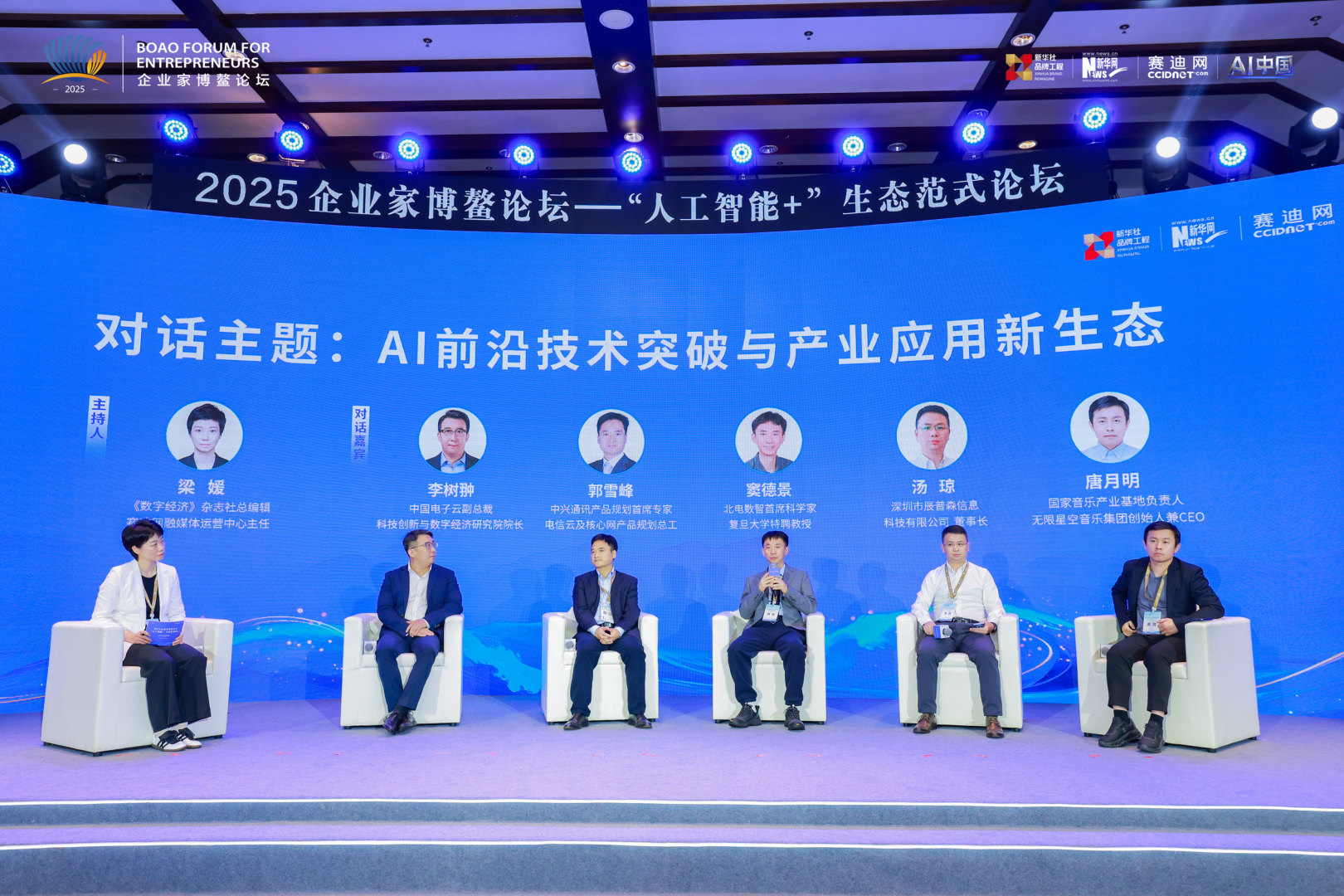 12月3日,2025企业家博鳌论坛“人工智能+”生态范式论坛的核心环节——"AI+:技术向善,产业向新"圆桌对话,在博鳌迎来了技术与产业的思想热潮。本次圆桌对话由《数字经济》杂志社总编辑、赛迪网融媒体运营中心主任梁媛主持,汇聚了中国电子云副总裁、科技创新与数字经济研究院院长李树翀,中兴通讯产品规划首席专家、电信云及核心网产品规划总工郭雪峰,北电数智首席科学家、复旦大学特聘教授窦德景,深圳市辰普森信息科技有限公司董事长汤琼,国家音乐产业基地负责人、无限星空音乐集团创始人兼CEO唐月明五位行业领军者,围绕“技术向善,产业向新”这一核心主题,共同探讨AI技术突破与产业融合的深层逻辑,给出了兼具高度与落地性的思考。