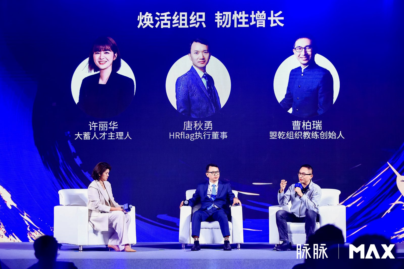 从左往右:大蓄人才主理人许丽华、HRflag执行董事唐秋勇、曌乾组织教练创始人曹柏瑞